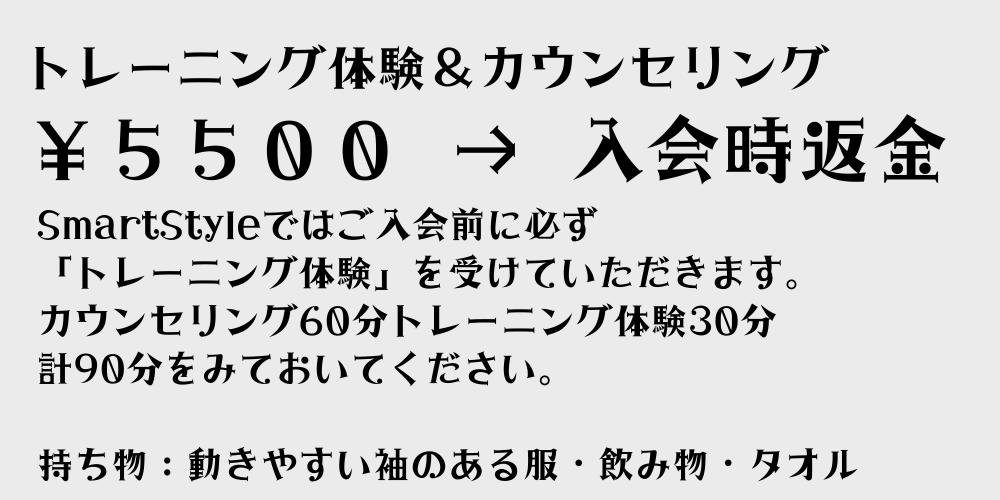 SmartStyleでパーソナルトレーニングを受けてみて価格が”高い”か”安い”かはお客様ご自身で判断していただけたらと思います。